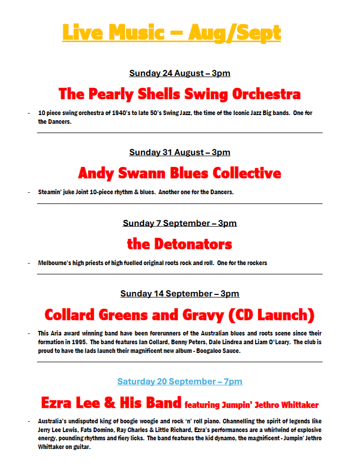 Join us every Sunday afternoon from 3:00pm for ‘Sundays Sessions’- your weekly dose of Rockabilly, Rock'n'Roll and Rhythm and Blues.